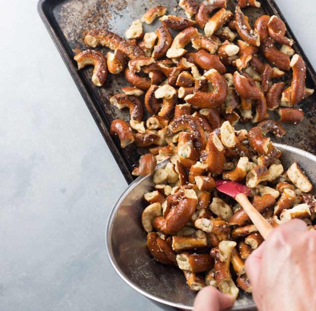 Pretzels Instructions Preheat the oven to 250 degrees F. Oct 16 2018 - Trust me when I tell you that these pretzels are addicting. Break pretzels in bite size pieces and put in 9 x 13 inch cake pan.